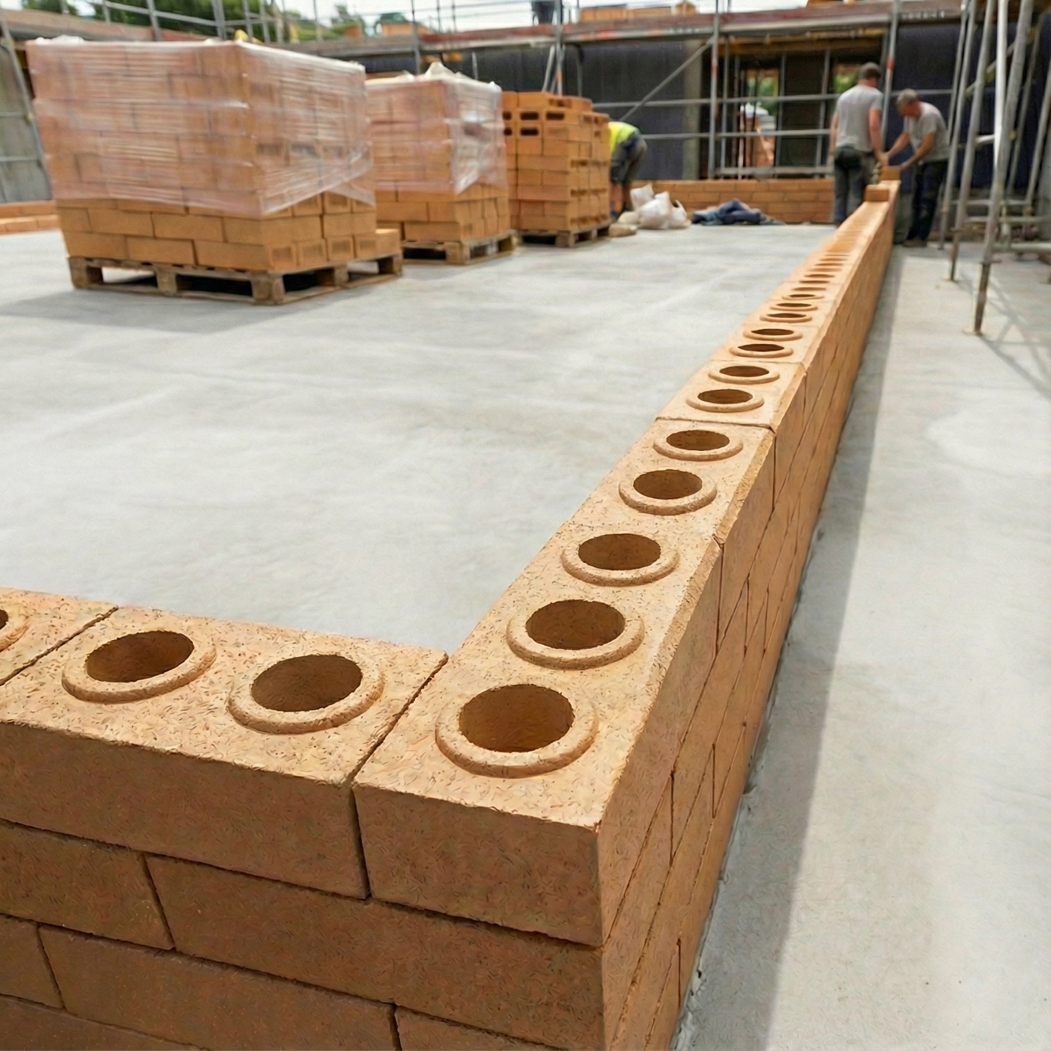 Resistência superior ao tijolo cerâmico comum. Prensagem de alta pressão garante estrutura sólida para até 3 andares.